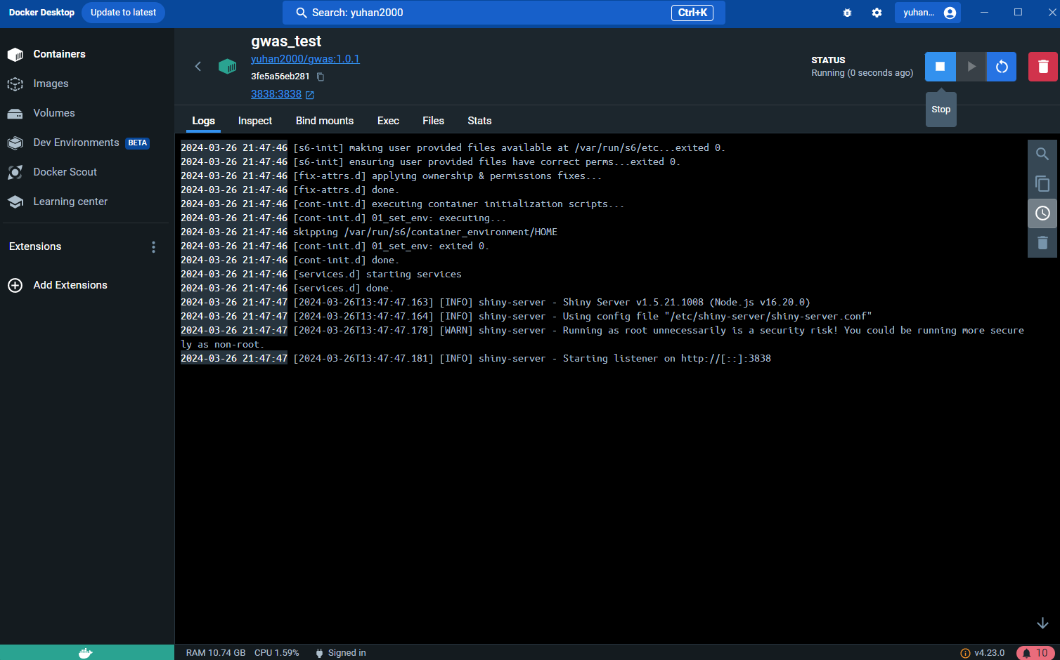 Enter “localhost:Host port of container” (eg. localhost:3838) in the web browser’s (eg.Chrome, Firefox, Edge……) address bar to enter the software interactive interface. If “Host port” of container was set to 0, please check the port of the container in the “Container” panel.